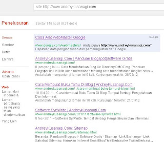 Anda sedang membaca artikel tentang Trik Mengetahui Apakah Blog Sudah Terindex Google. Anda bisa bookmark halaman ini dengan URL http://rujakcemil.blogspot.com/2012/05/trik-mengetahui-apakah-blog-sudah.html.